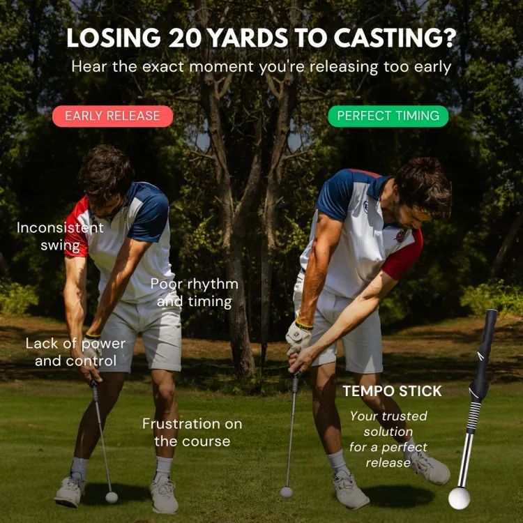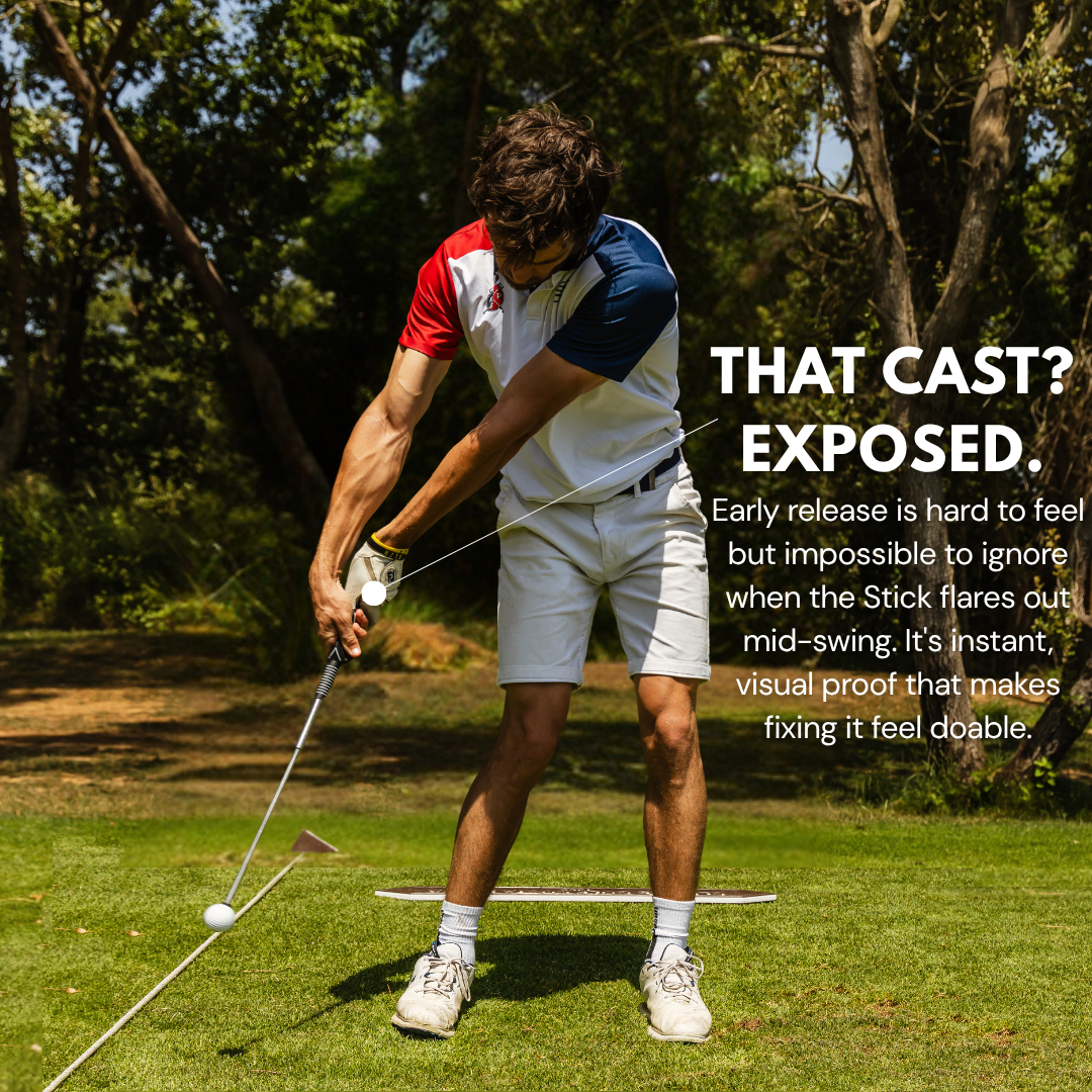 The telescoping shaft creates an audible "CLICK" at the exact moment you should release the club. If you're casting early, you'll hear it too soon. If your tempo is off, you won't hear it at all.